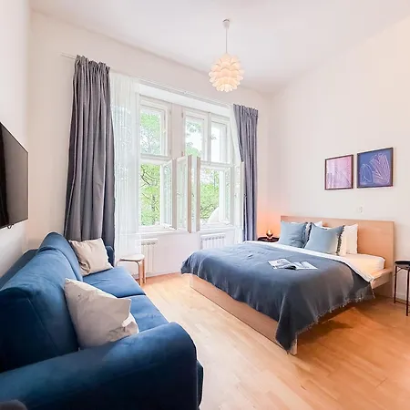6-pokojowy apartament oferuje możliwość zwiedzania takich miejsc jak Tańczący dom w odległości 19 min piechotą od obiektu, oraz Ściana Johna Lennona - około 25 min piechotą od obiektu. Plac Wacława znajduje się w malej odległości od tego apartamentu. Prawie 5 min spacerem od obiektu leży Muzeum Narodowe w Pradze.